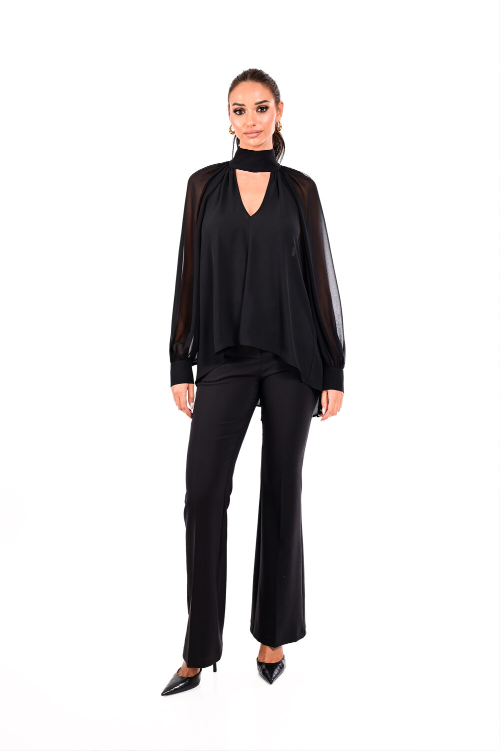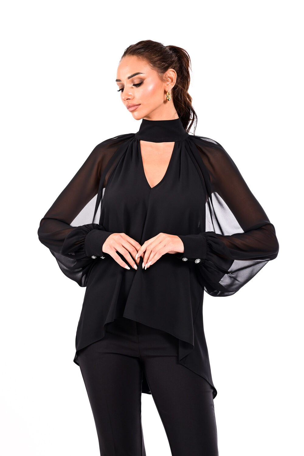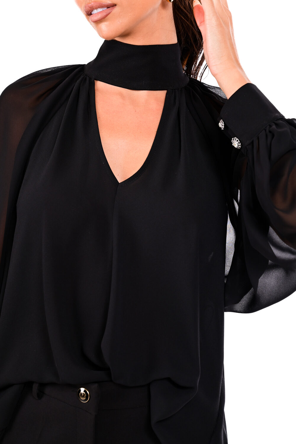 Μπλούζα ασύμμετρη με Μ/Μ και μανσέτες με κουμπιά με στρας