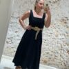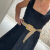 Φόρεμα κιπούρ με ψάθινη ζώνη