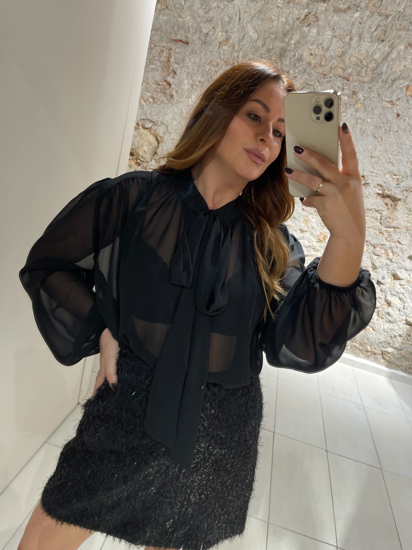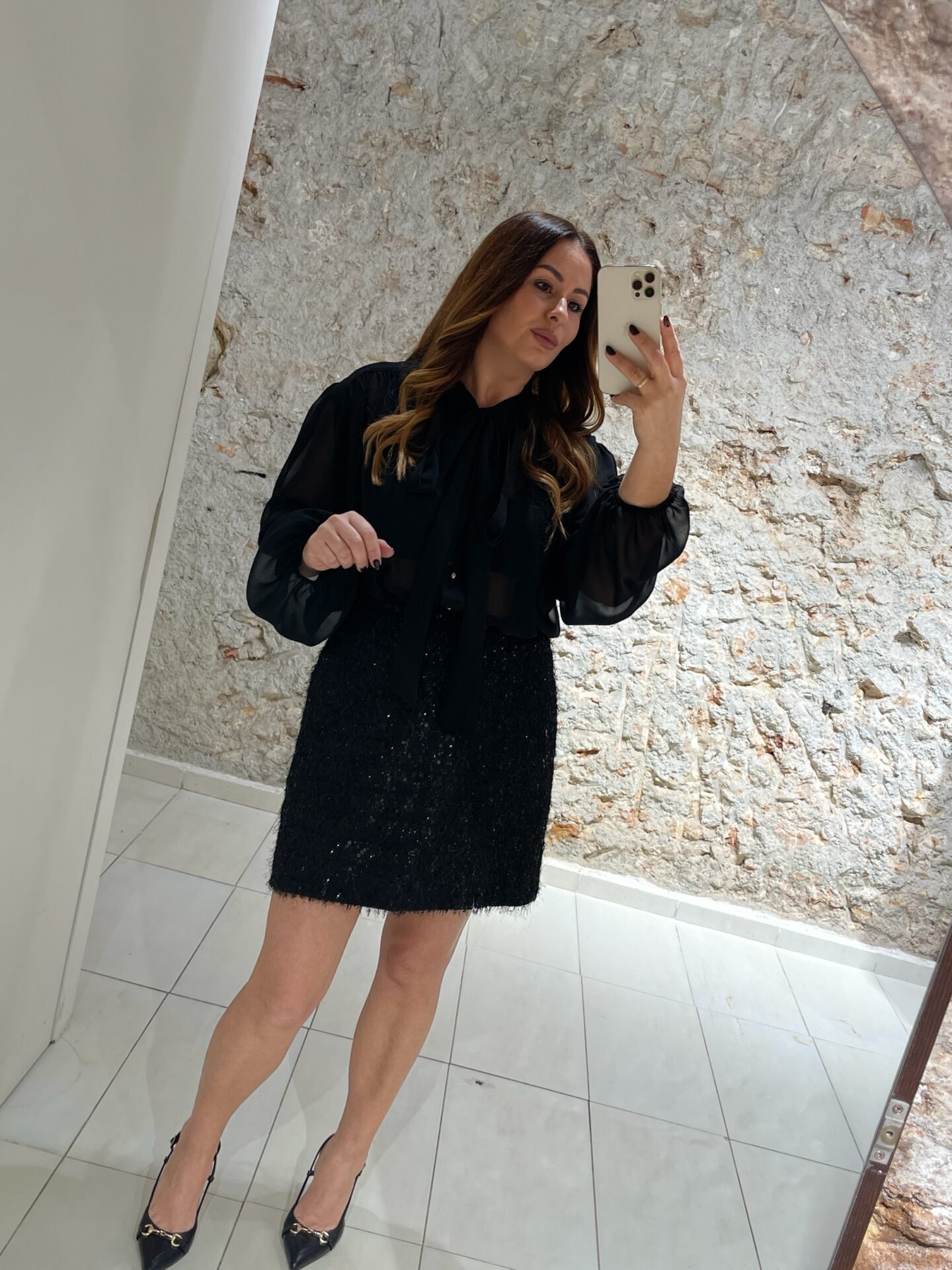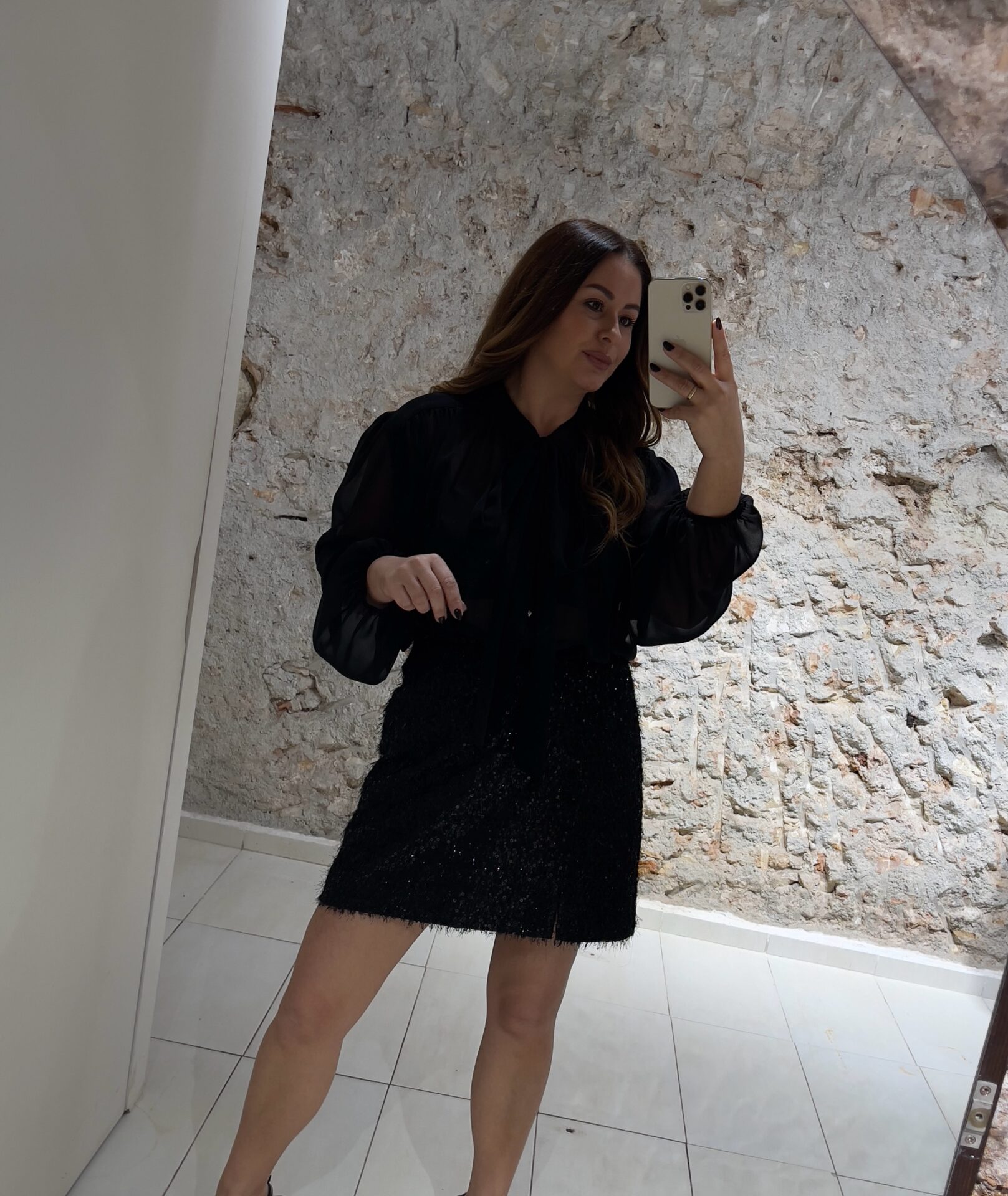 Φούστα κοντή με παγιέτες και κρόσσι κοντό