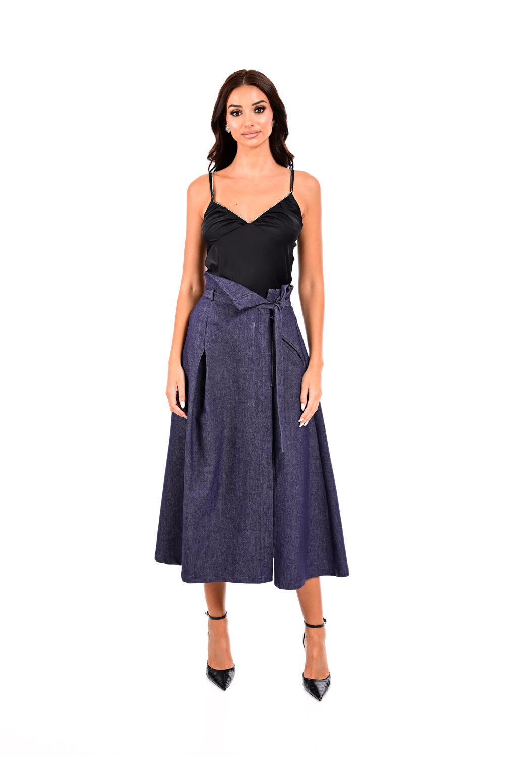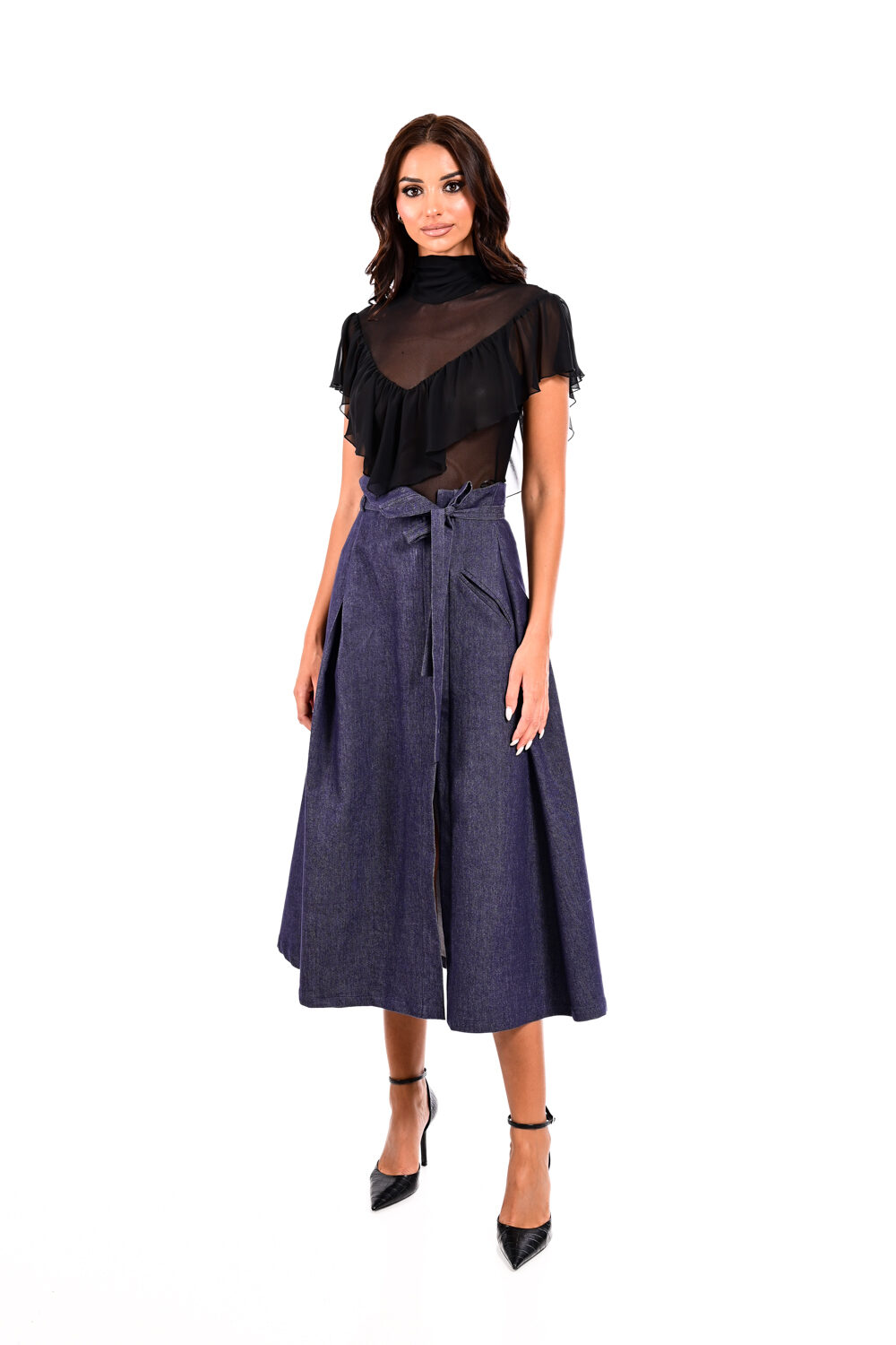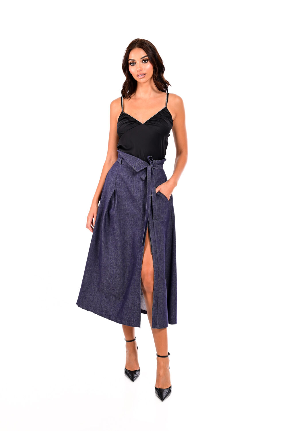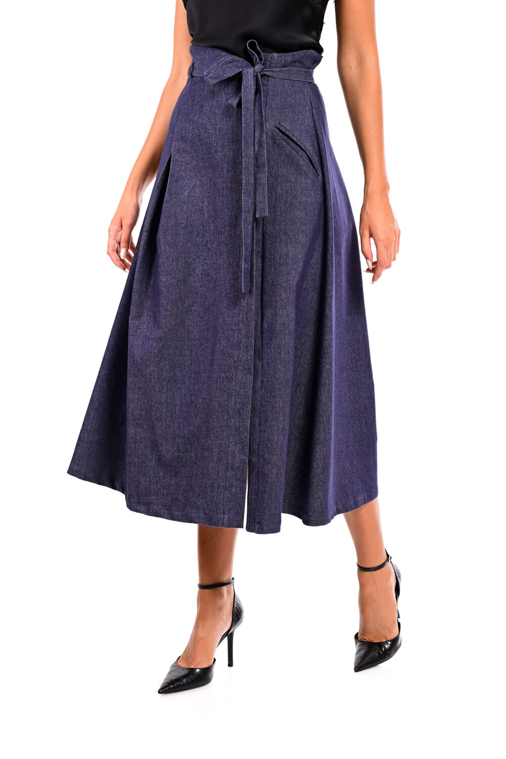Φούστα τζιν μίντι με ζώνη We Coss – 4003
