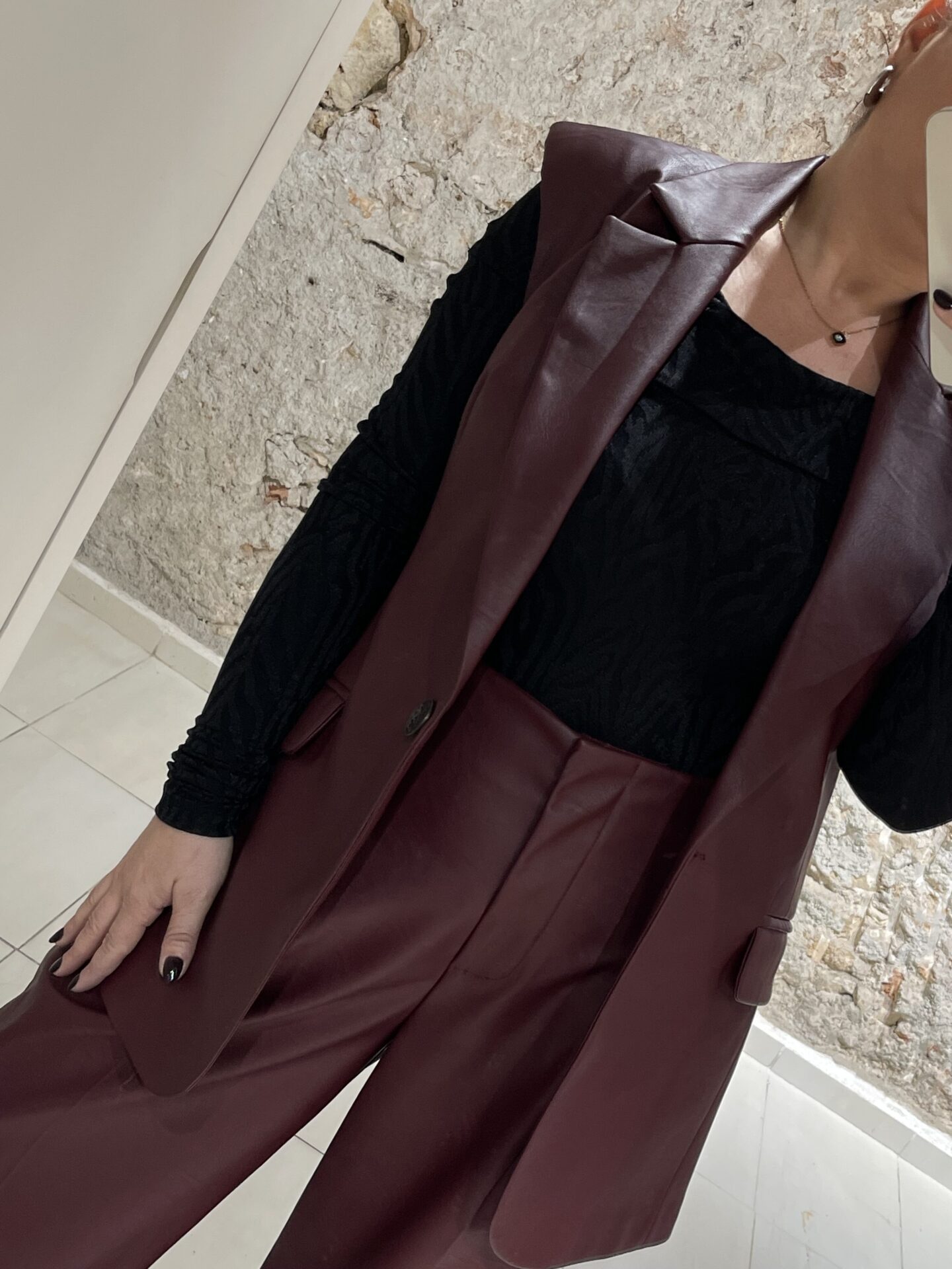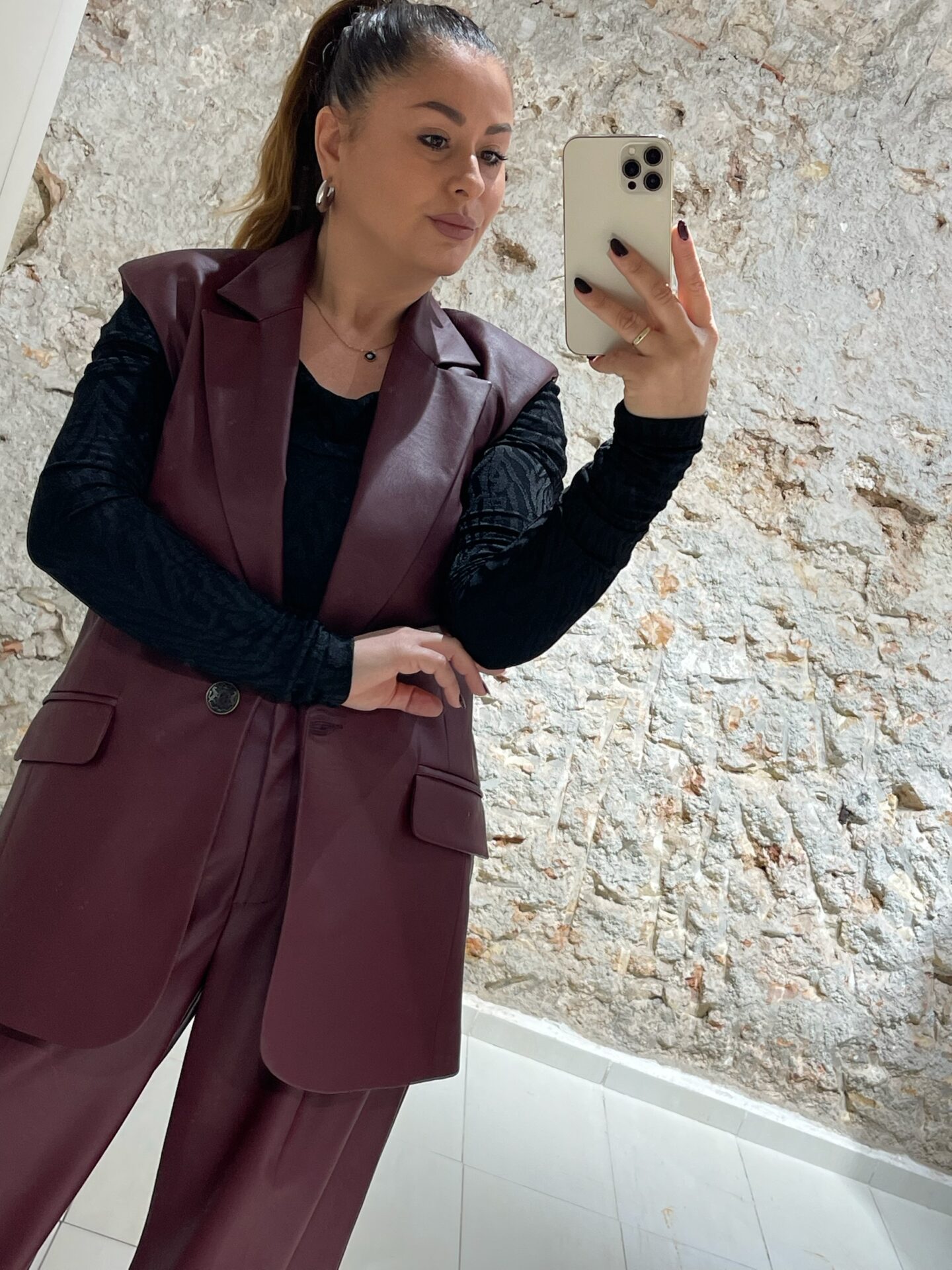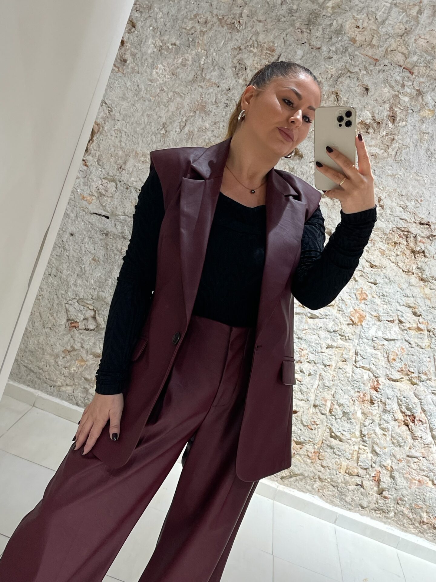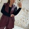 Γιλέκο eco leather μεσάτο με κουμπί We Coss – 3013