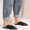 Γυναικεία Δερμάτινα Mules Flat Sandalista – Cap Noir