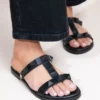 Γυναικεία Δερμάτινα Σανδάλια Μαύρα Με Τρουκς Sandalista – Deux Nu Rock Noir