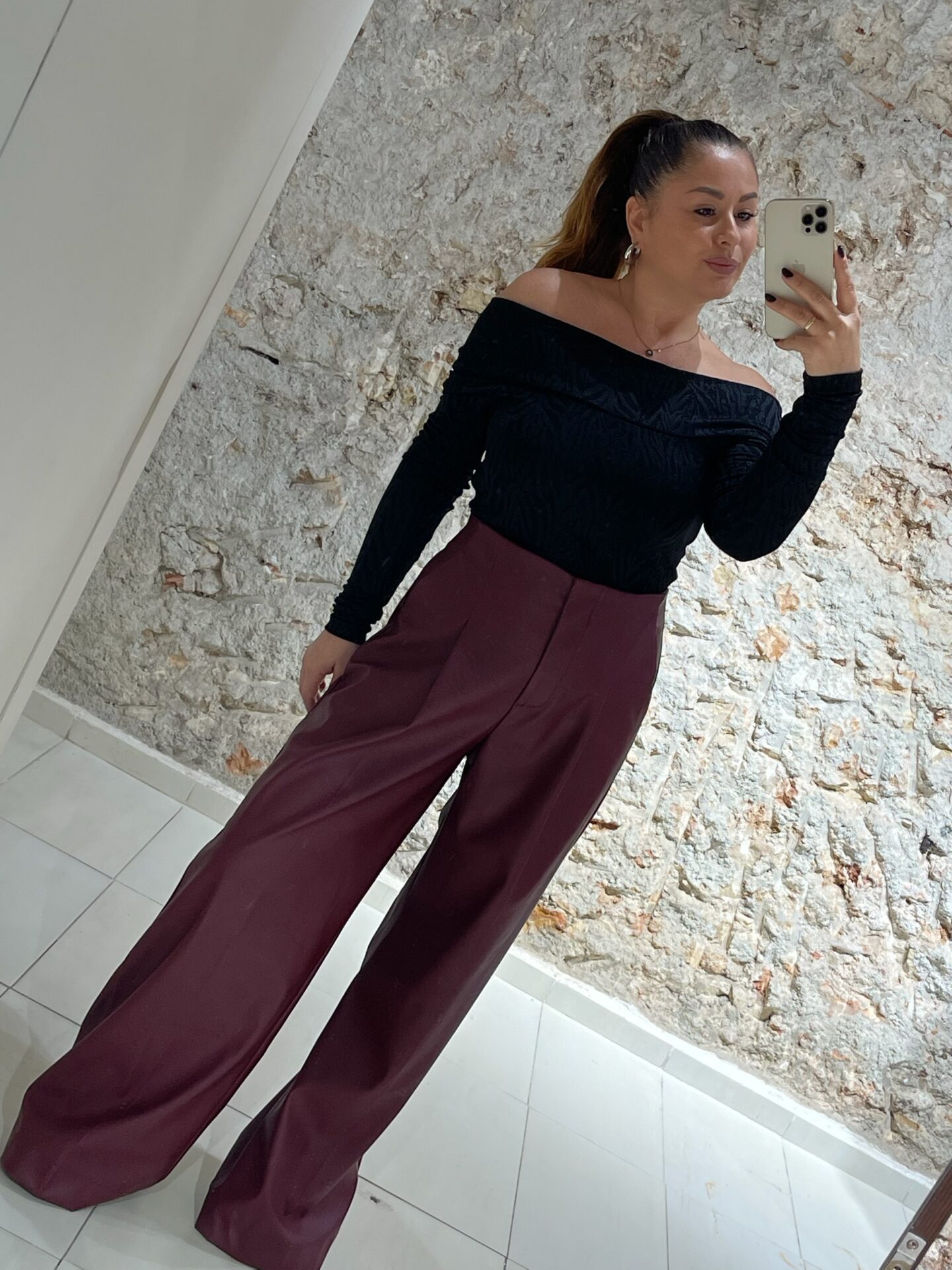 Παντελόνα eco leather με πιέτες We Coss – 1007