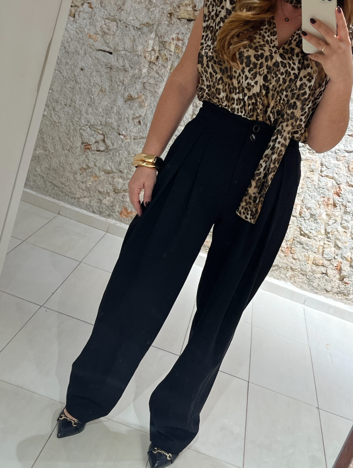 Παντελόνα ψηλόμεση με πιέτες σε κρεπ ύφανση