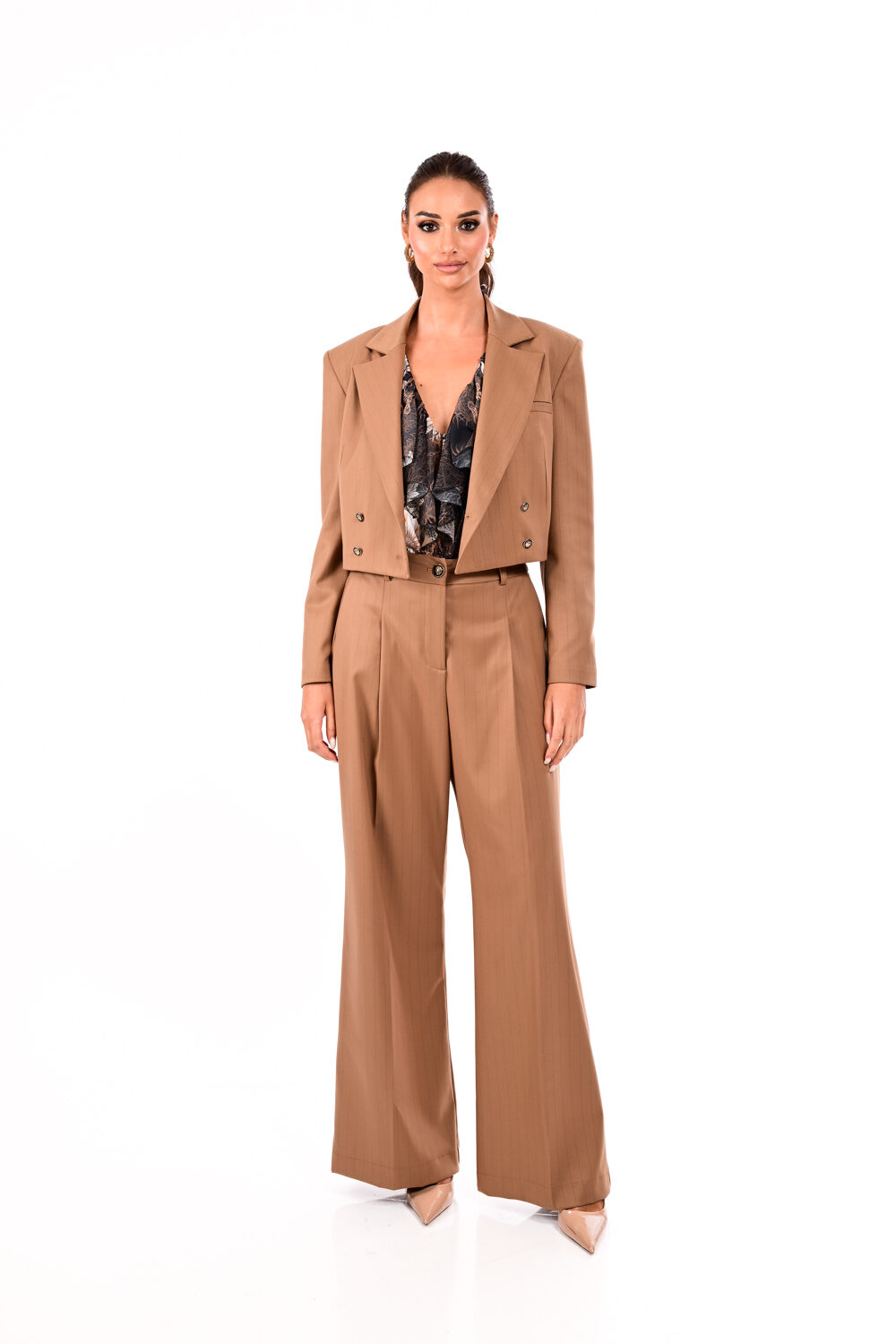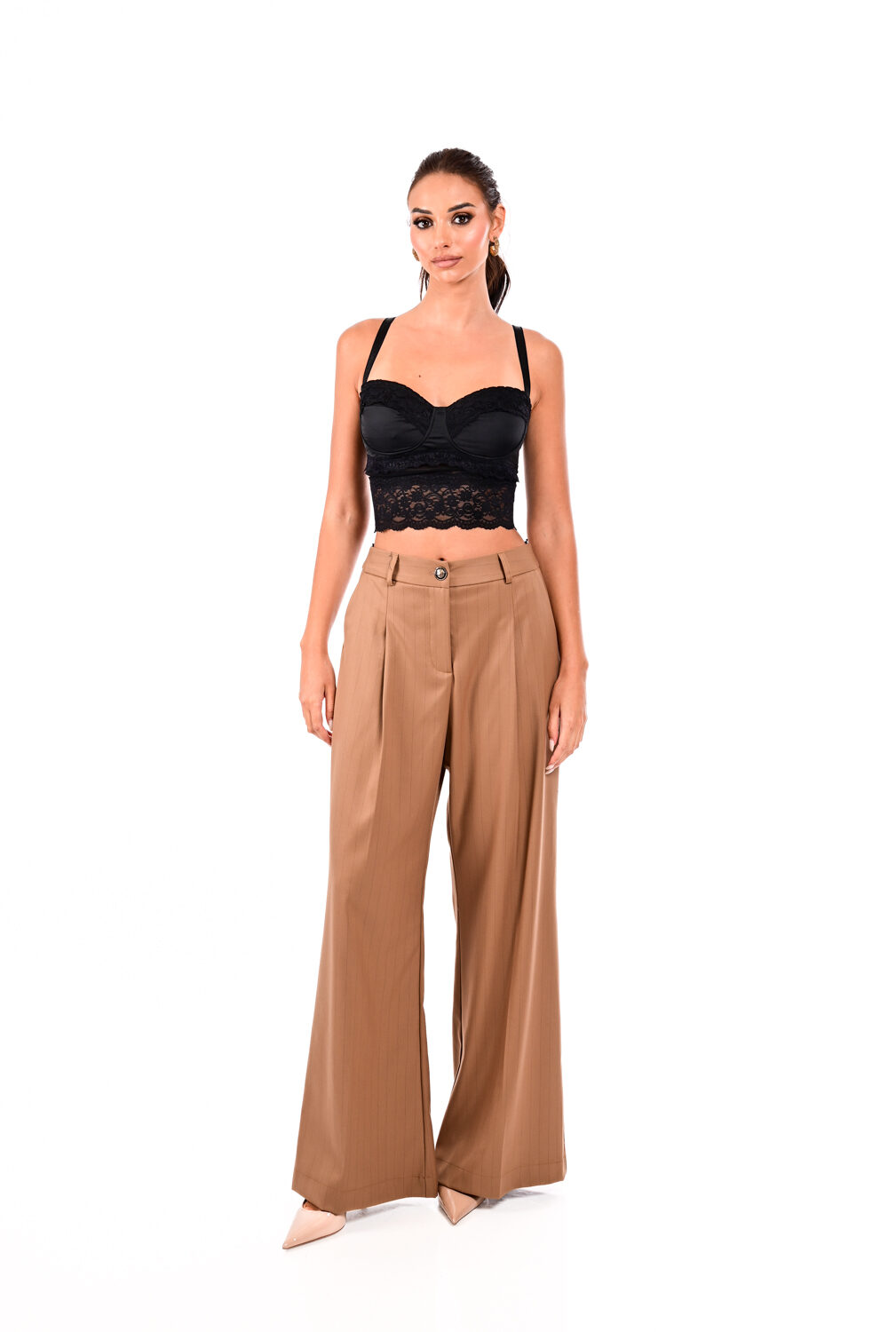 Παντελόνα ψηλόμεση ριγέ με πιέτες We Coss – 1011