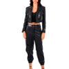 Παντελόνι δερμάτινη cargo με λεπτομέρειες κρόκο We Coss – 1017
