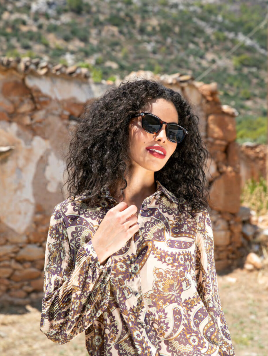 Πουκάμισο εμπριμέ με πλισέ μανίκια