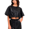 crop μπλούζα από δερματίνη,