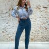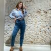 Τζιν παντελόνι ψηλόμεσο με εξωτερικά γαζιά