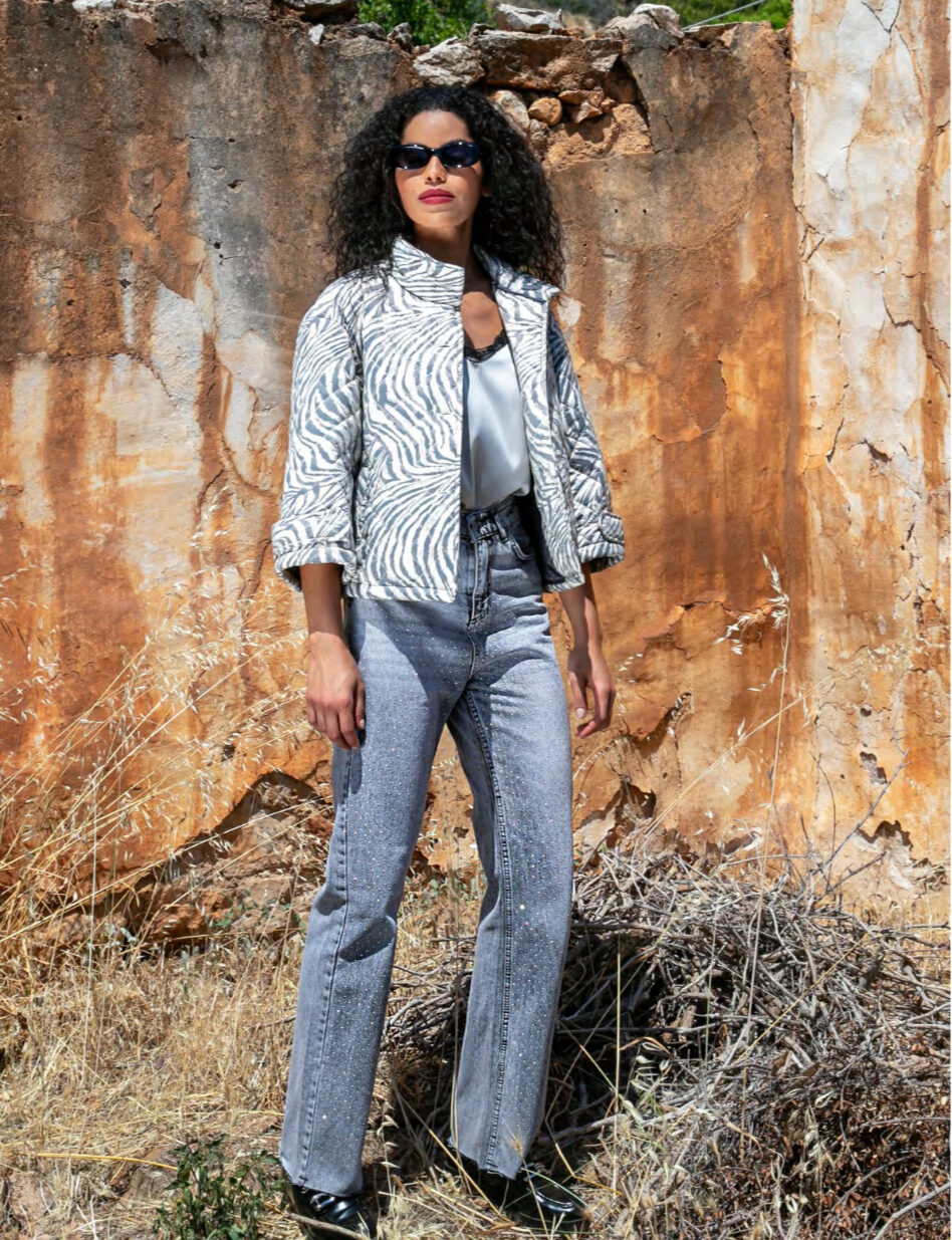 Τζιν ψηλόμεσο με ασημένια στρας White 22 – WX10030