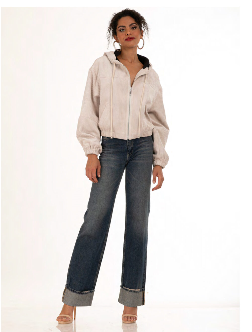 Ζακέτα bomber κοτλέ με κουκούλα White22 – WX0690