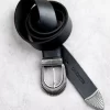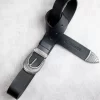Ζώνη Δερμάτινη με ανάγλυφη ασημί αγκράφα Sandalista – Rhombe Noir